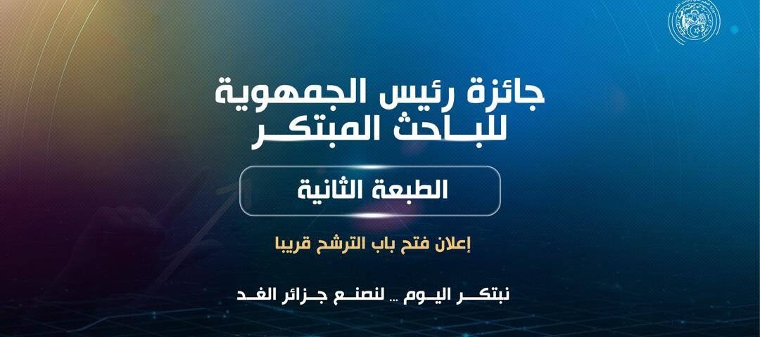 8 janvier 2026تُعلن وزارة التعليم العالي والبحث العلمي عن فتح باب الترشح للطبعة الثانية من جائزة رئيس الجمهورية للباحث المبتكر
